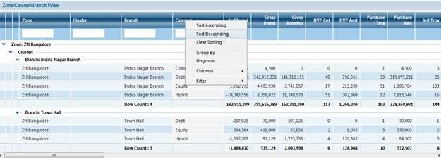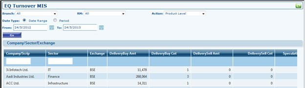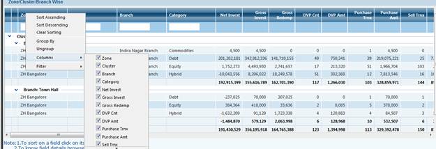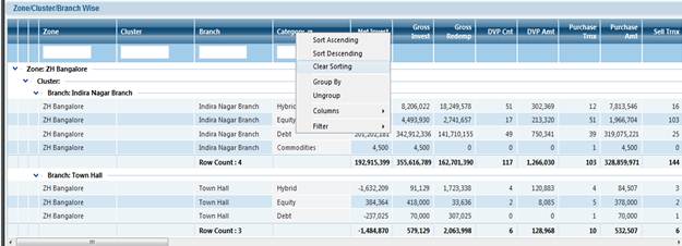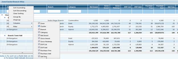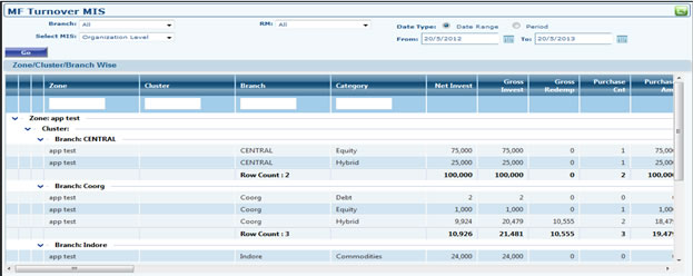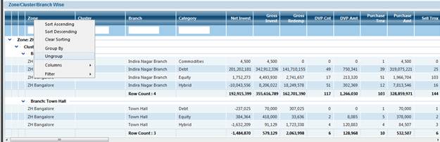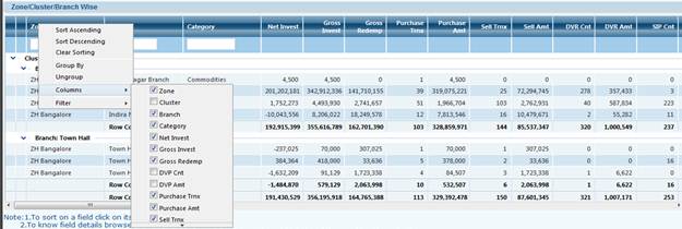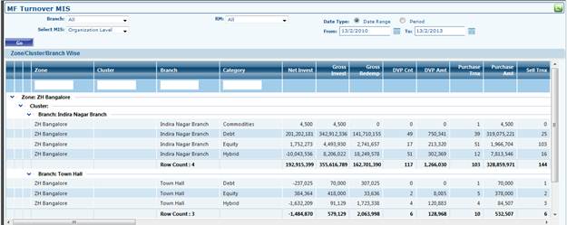 For Example: we will take MF Turnover MIS Screen , to explain these new Features of The Grid.