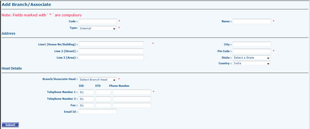 - If Branch is an Internal Branch: Fill the form and Submit