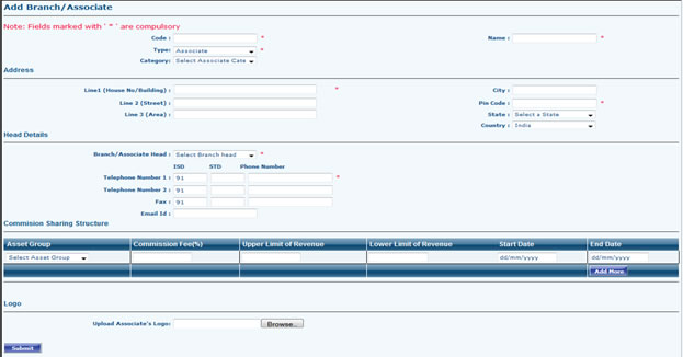 - If Branch is an Associate Branch: Select Associate Category (If you have not created associate category then please first Add Associate Category). Setup Commission Sharing Structure, Upload Associate Branch Logo.
