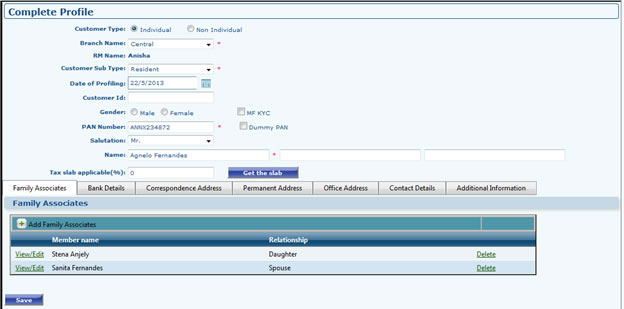 - Case 1: Edit Customer Profile: - Go to customer profile then click to Edit Profile. Edit the required information including PAN, DOB, Family associations, bank details, Correspondence address, Permanent address, Office address, Contact Details TABS and click to update. To get Tax Slab it’s mandatory to fill your income first in your Finance Profile Section, according to your income Tax Slab will be displayed after clicking to Get Tax Slab button.