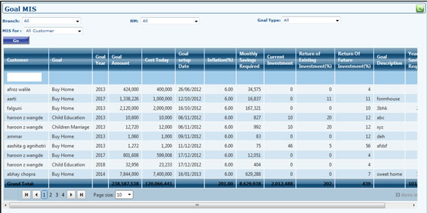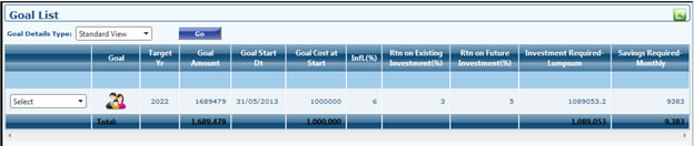 - Go to Financial planning >> Goal planning >> Goal List.