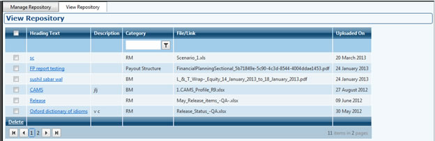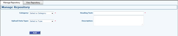 - Repository category is used to give access to the various categories. The data uploads can be done under admin>>content>>repository