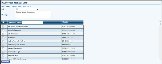 - Select RM, it will show all the customers under that RM, Enter Message in message box, Select Customer and Send