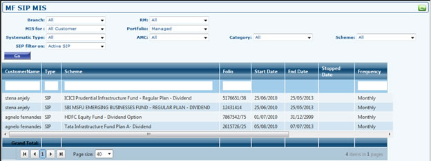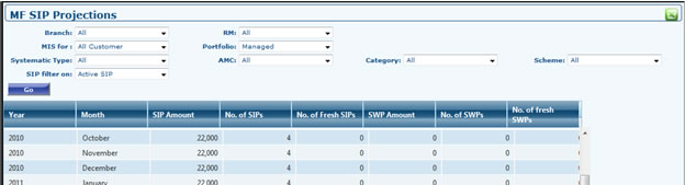 - View the MF SIP Projections here for a particular customer or all the customers.