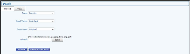 - Go to Profile Dashboard >> Proof >> Vault Proof >> Upload. Now select the Type, Proof/form, Copy type and upload the file then submit. The uploading document should be in proper way.